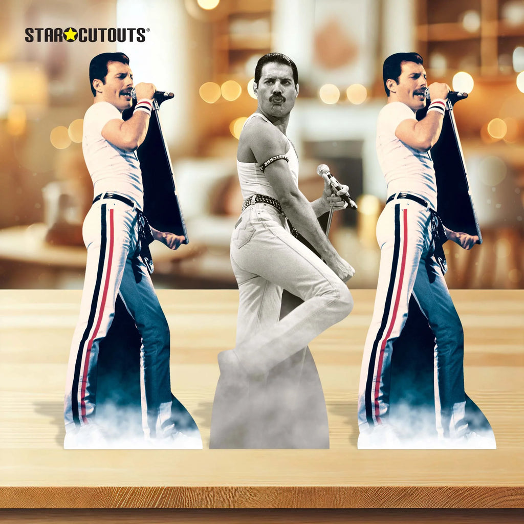 Celebrate the legend with this fun shelf top pack featuring three mini Freddie Mercury cardboard cutouts.